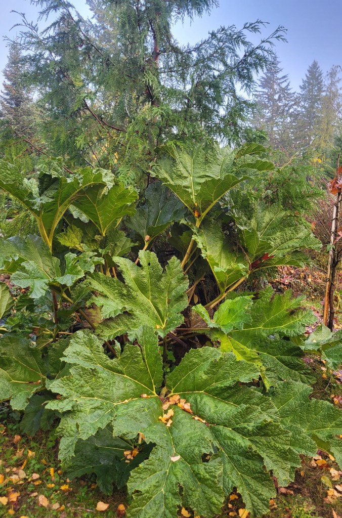 When we moved into this home, I was delighted by 2 clumps of giant rhubarb. The immense leaves are enchanting! Not everyone is as enamored of it though, in some places it is considered invasive and banned. Gunnera manicata – Plant Finder