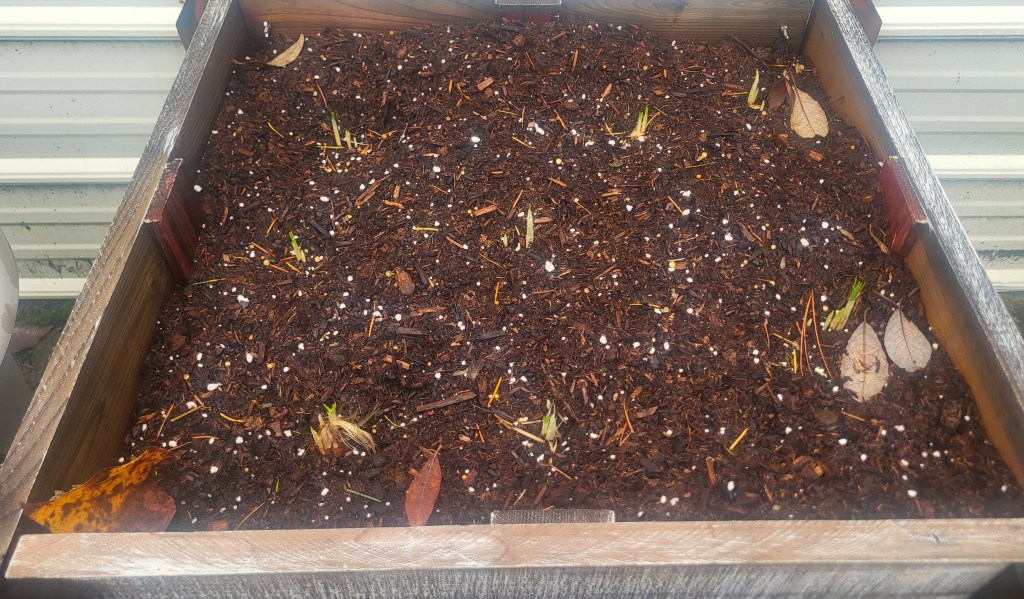 For now, I am delighting in these sprouts of my first set of crocus sativus bulbs.