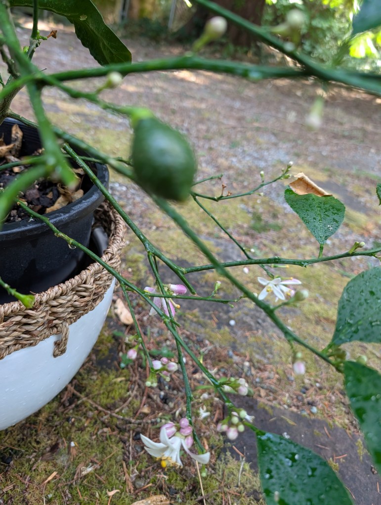 Our Meyer Lemon is blooming such lovely delicate flowers with tiny start of lemons.